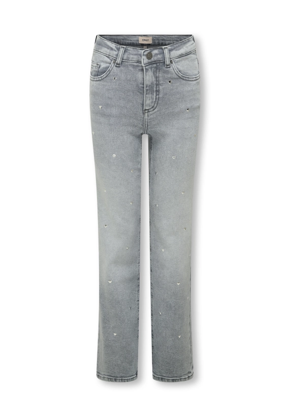Verkrijgbaar in de kleur medium grey denim met hartjes studs.