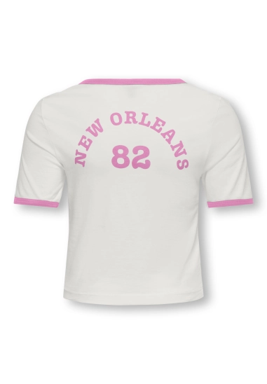 Shirt voor meisjes van het merk Kids Only. Verkrijgbaar in de kleur wit/roze, wit/zwart & zwart/wit.