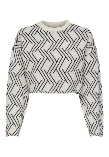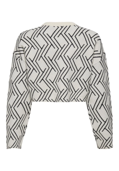 Verkrijgbaar in de kleur wit met zwart patroon.