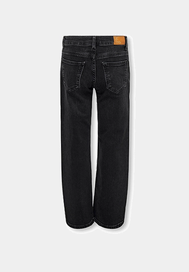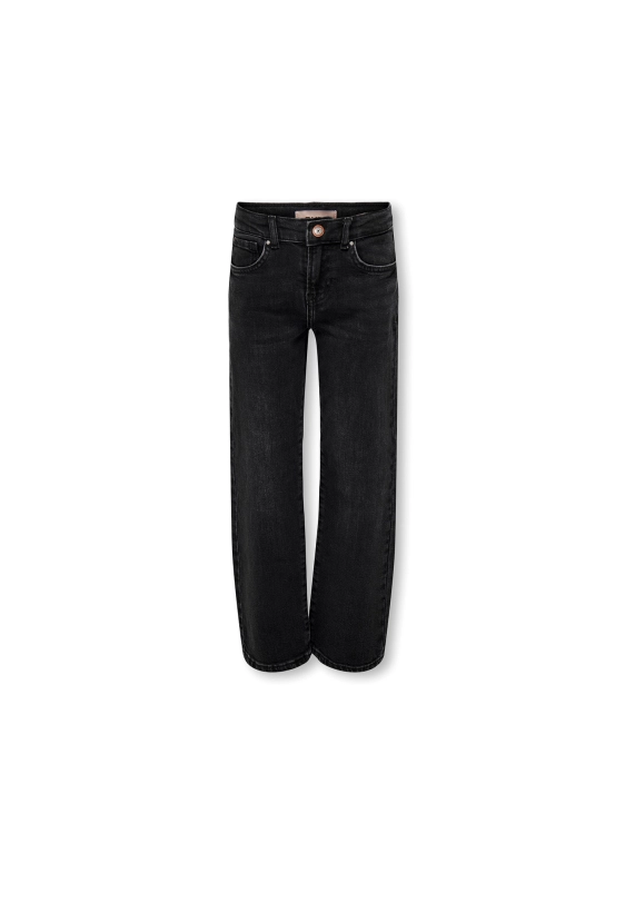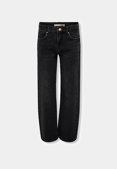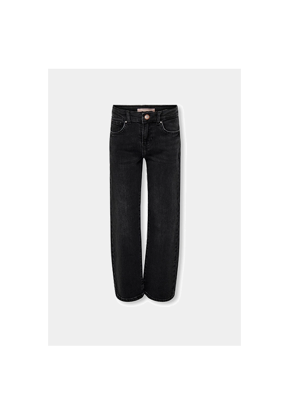 Wijde jeans Megan voor meisjes van het merk Kids ONLY. De broek heeft stretch en een verstelbare tailleband. De jeans is verkrijgbaar in een zwarte denim wassing.