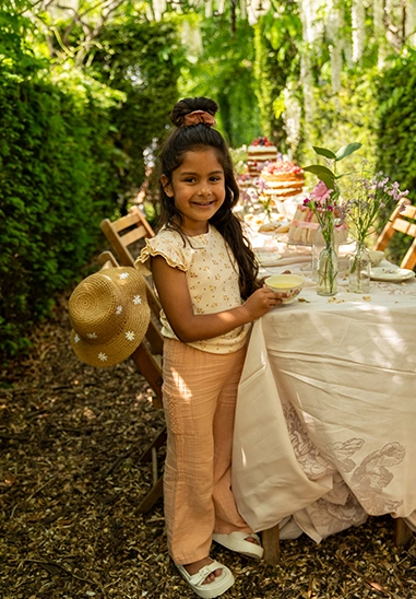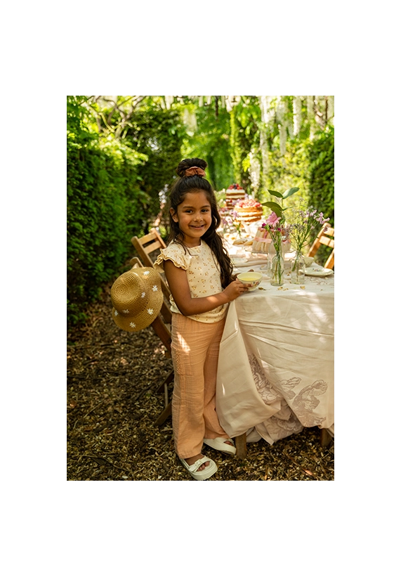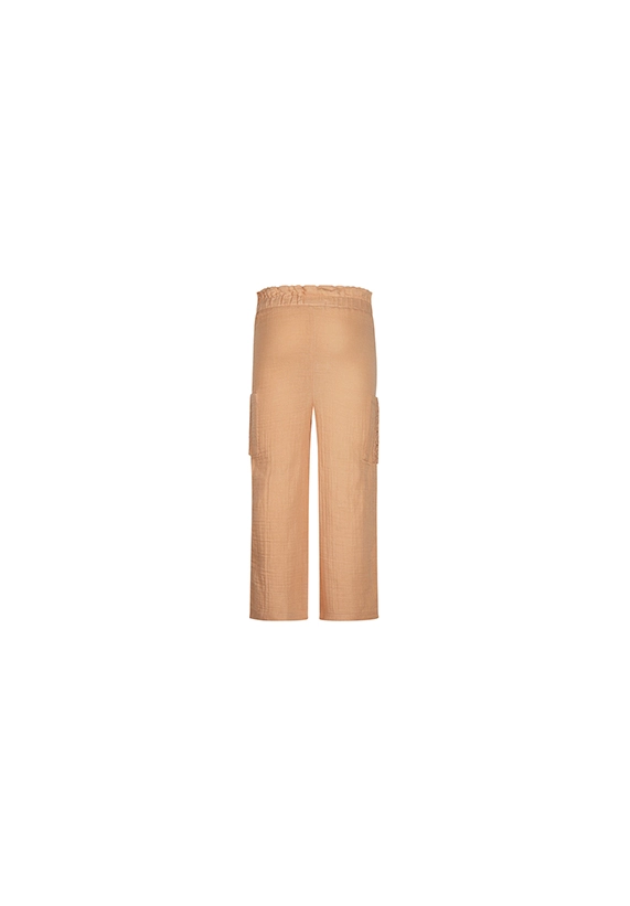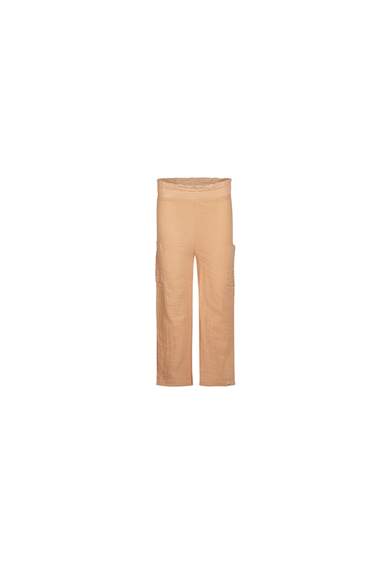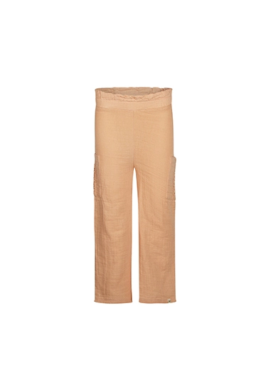 Wijde broek voor meisjes. De heeft zijzakken en is van het leuke merk Koko Noko. Verkrijgbaar in een effen perzik kleur en perfect te combineren bij de zomercollectie 2025 van Koko Noko.