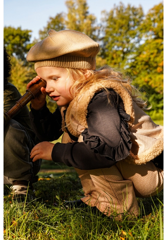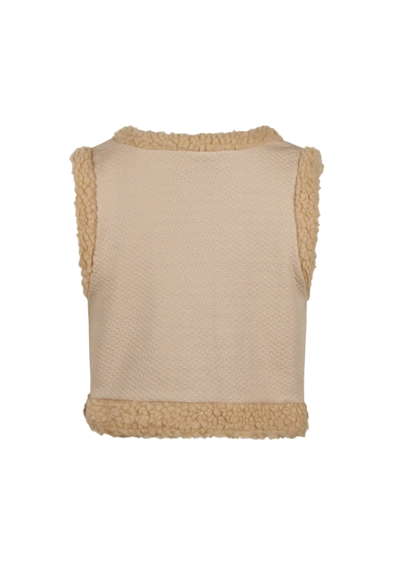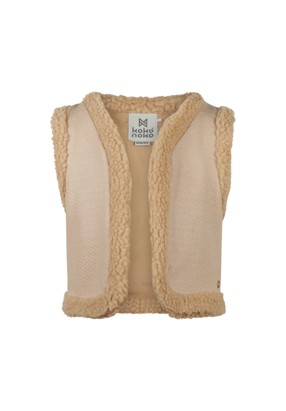 Gilet voor meisjes van het merk Koko Noko. Verkrijgbaar in de kleur beige.