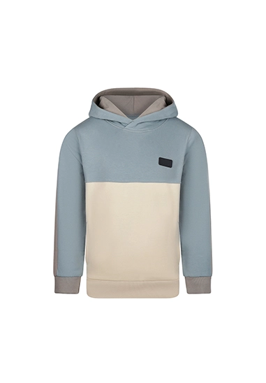 Hoodie voor jongens van het merk Koko Noko. De sweater is verkrijgbaar in het blauw met ivoor wit.