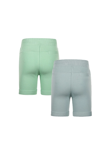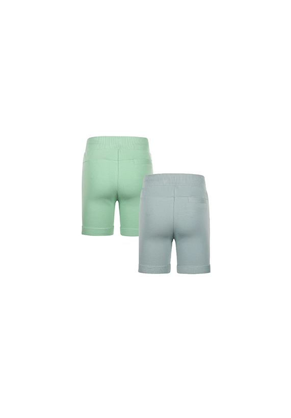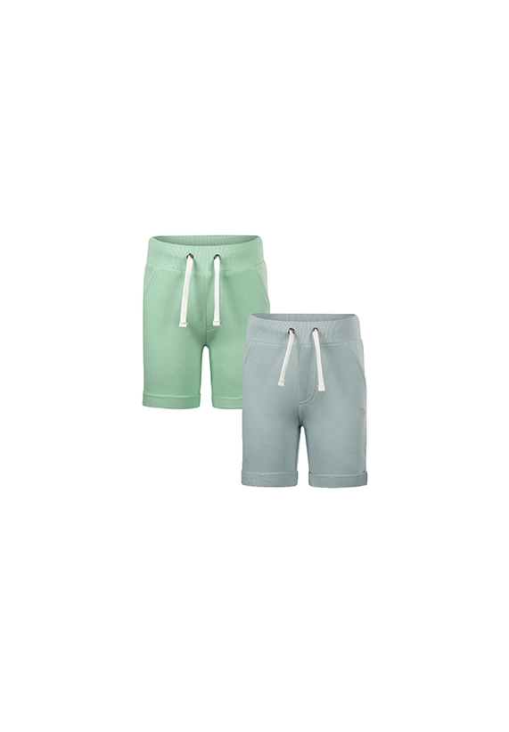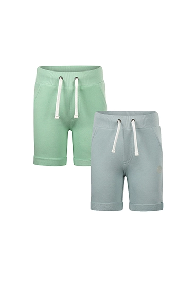 2-pack jogging shorts voor jongens. De korte broeken zijn effen van kleur en zijn van het merk Koko Noko. De shorts zijn makkelijk te combineren bij de taupe en mint groene items uit de zomercollectie van 2025. In de 2-pack zit een mint kleurige short, en een licht blauwe short.