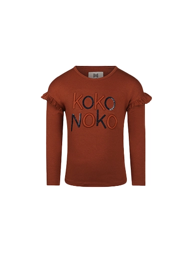 Longsleeve voor meisjes van het merk Koko Noko. Dit shirt met lange mouwen heeft een print. Verkrijgbaar in een cognac kleur.