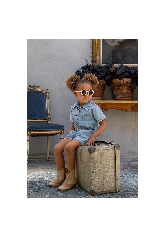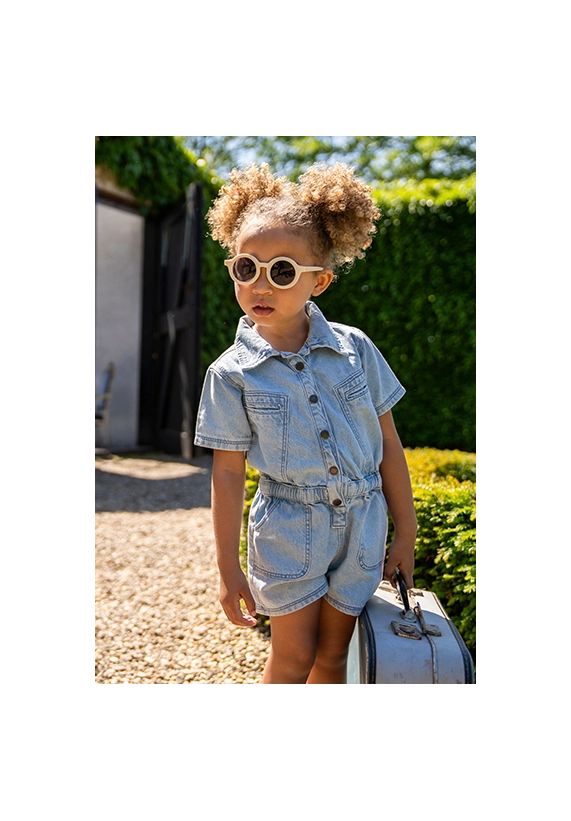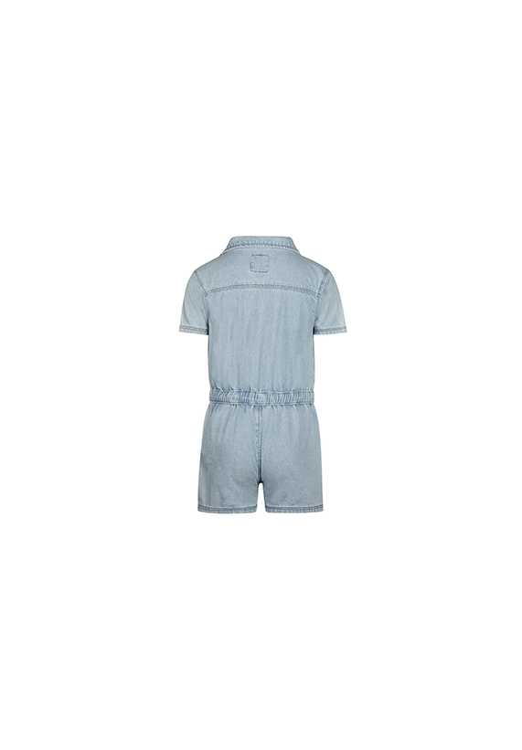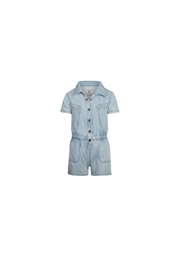 Playsuit met korte mouwen voor meisjes. Deze denim jumpsuit is een echte eye-catcher. Het zomerse pak is van het merk Koko Noko en heel leuk te combineren bij veel items uit de zomercollectie van 2025, maar ook prima los te dragen.