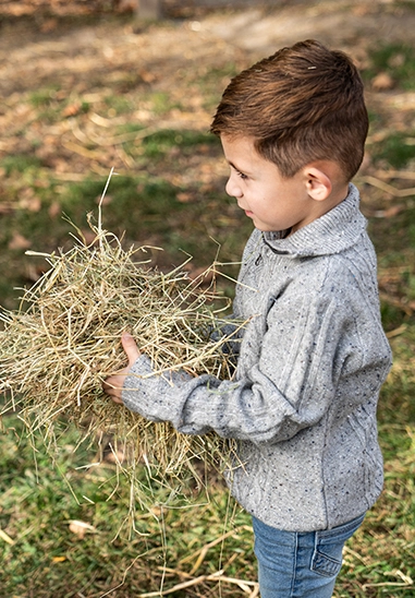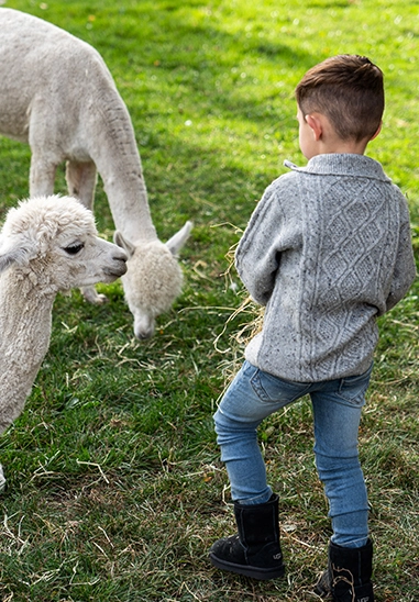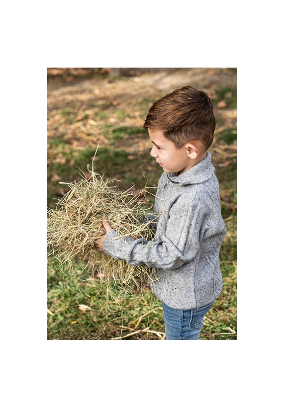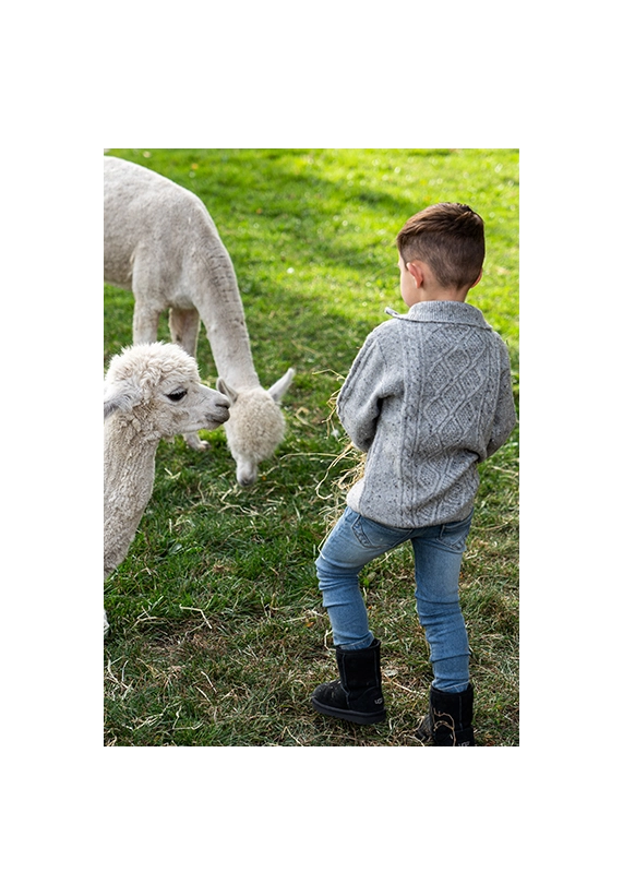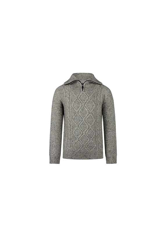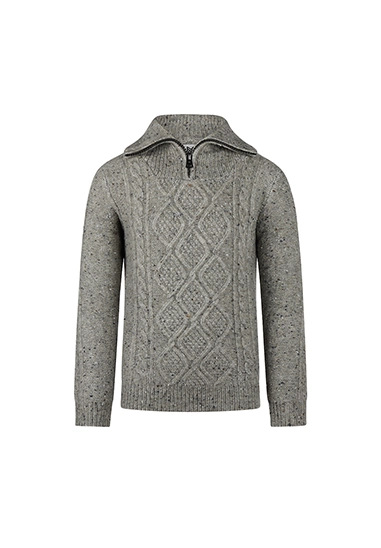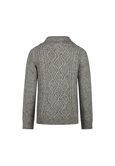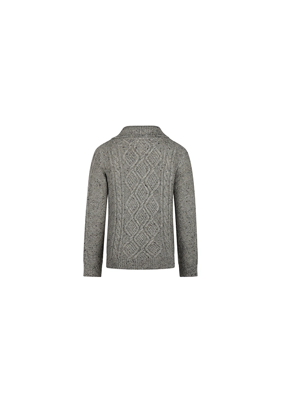 Kabeltrui met schipperskraag voor jongens van het merk Koko Noko. De warme trui is verkrijgbaar in een beige, grijze tint.