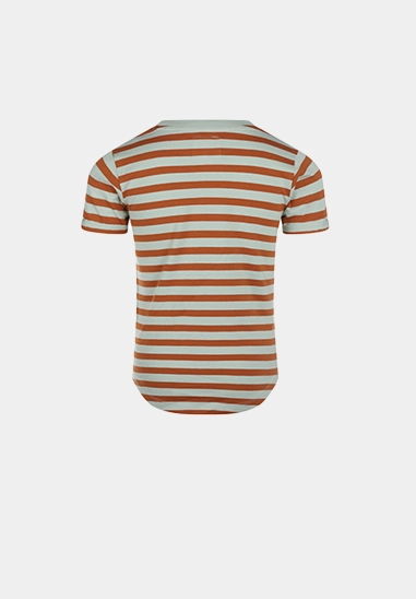 Verkrijgbaar in de kleur aqua met cognac strepen.