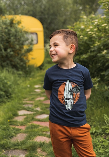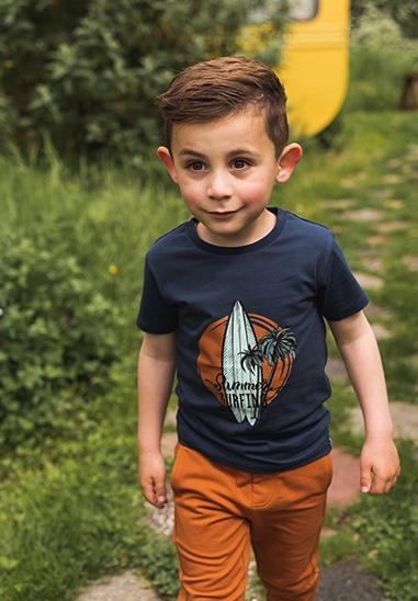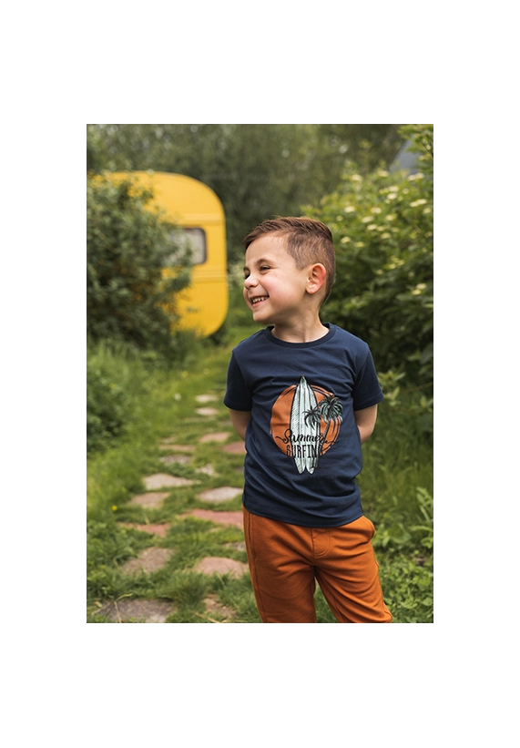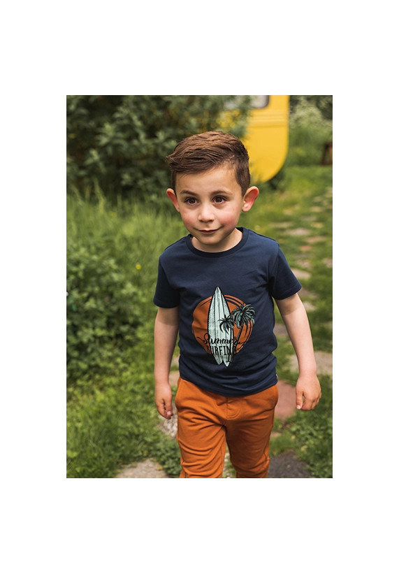 Verkrijgbaar in de kleur donker blauw met opdruk.