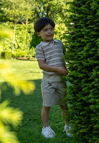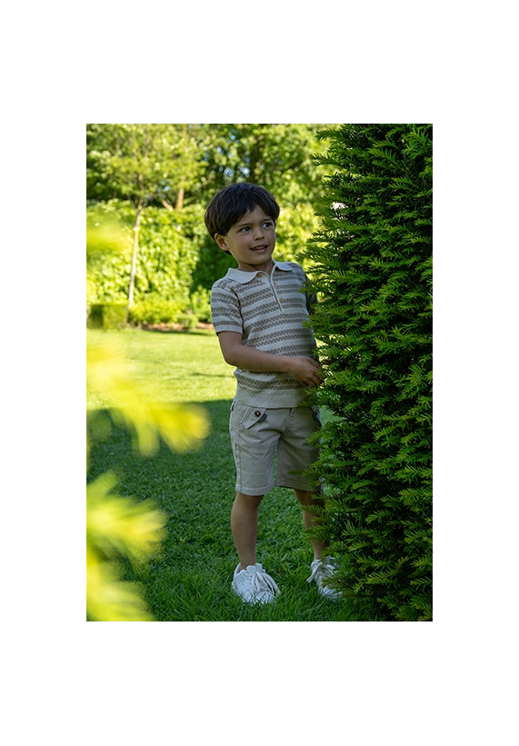 Short met klepzakken voor jongens. Dit chinomodel short is van het merk Koko Noko en past mooi bij veel items van de zomercollectie 2025. Verkrijgbaar in het beige.