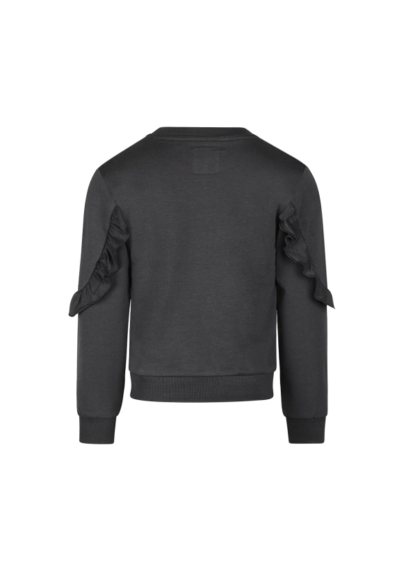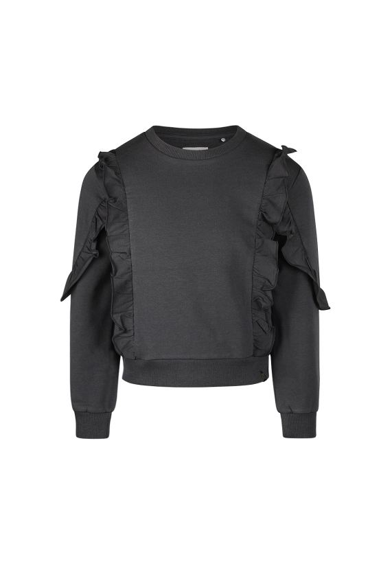 Deze stijlvolle Koko Noko sweater is een echte must-have voor meiden van 2 tot en met 10 jaar. De zwarte sweater heeft ruffles langs de voorkant en schouders, waardoor hij een unieke en modieuze uitstraling krijgt. De sweater is perfect voor dagelijks gebruik en makkelijk te combineren met jeans, leggings of een rokje.