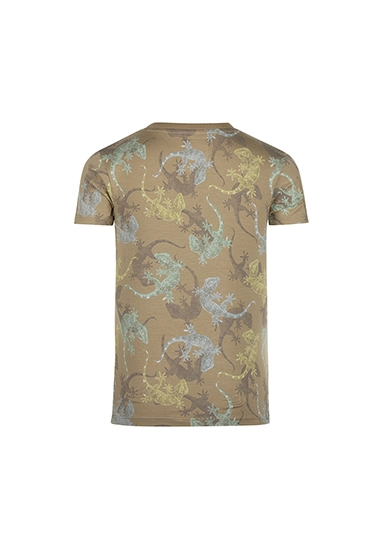 T-shirt korte mouwen voor jongens. Het t-shirt heeft een allover print en is van het merk Koko Noko. Het t-shirt is makkelijk te combineren bij de taupe en mint groene items uit de zomercollectie van 2025. Het t-shirt is verkrijgbaar in een taupe kleurige basis tint.