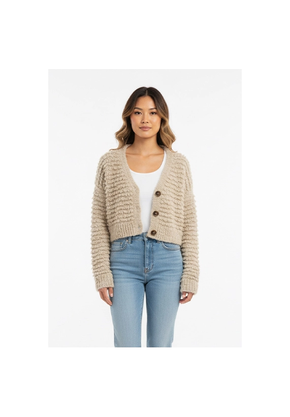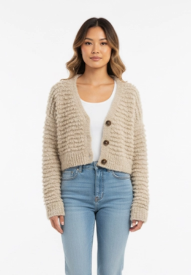Met v hals en te sluiten door middel van knopen.