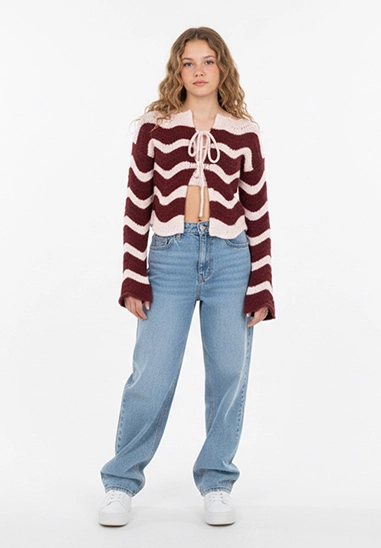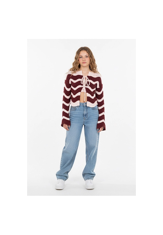 Vest voor dames van het merk Lavia. Met strikje. Verkrijgbaar in de kleur bruin & bordeaux.