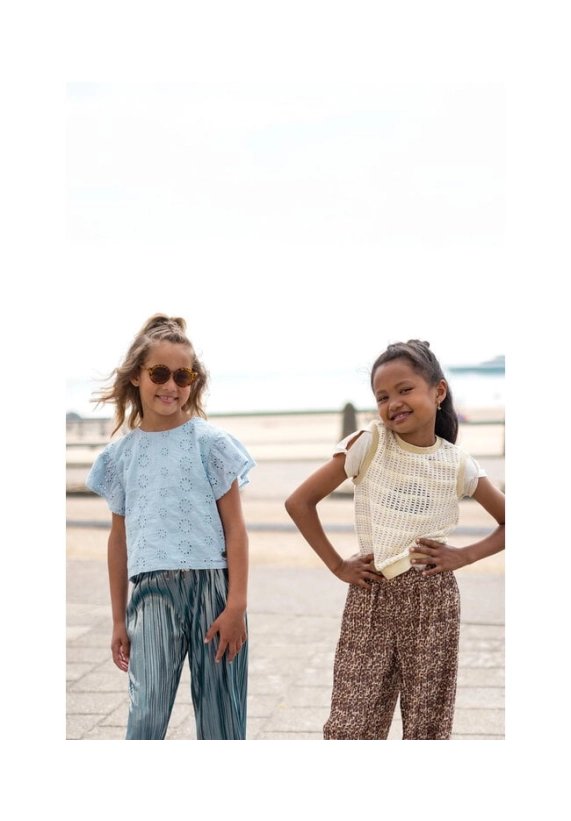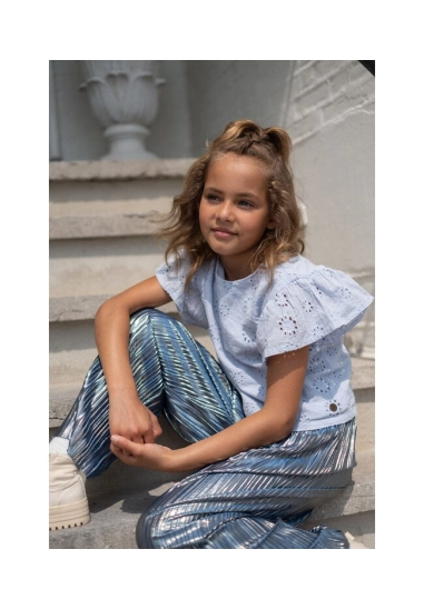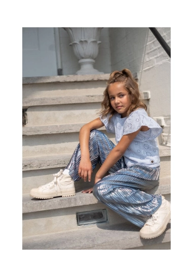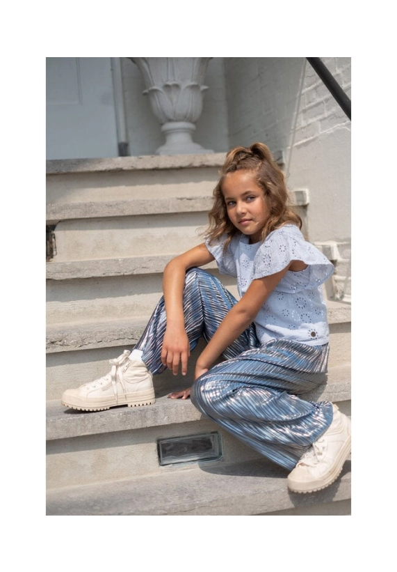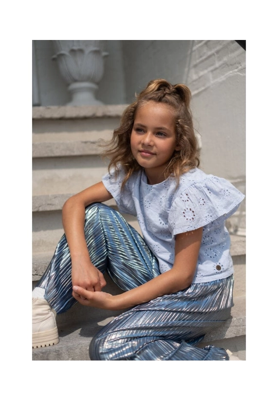 Metallic broek Fenna voor meisjes van het merk Like Flo. Verkrijgbaar in de kleur blauw.