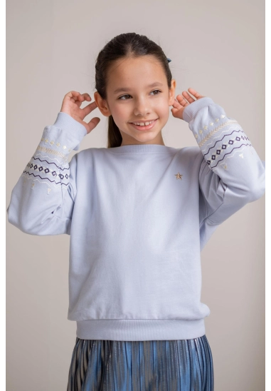 Sweater Donna voor meisjes van het merk Like Flo. Verkrijgbaar in de kleur licht blauw.