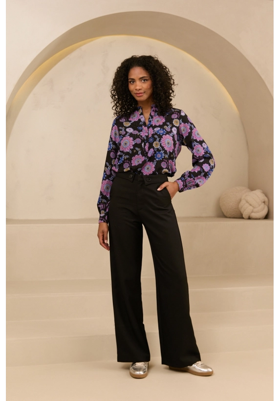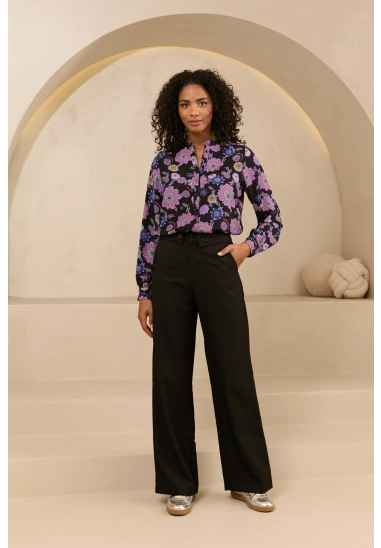 Verkrijgbaar in de zwart met bloemenprint blauw/paars.