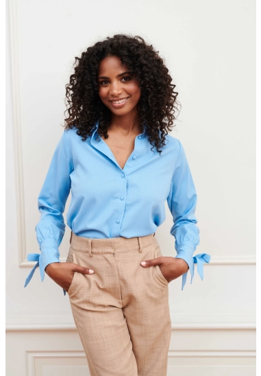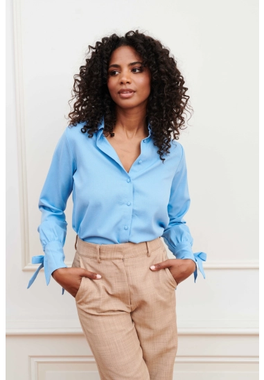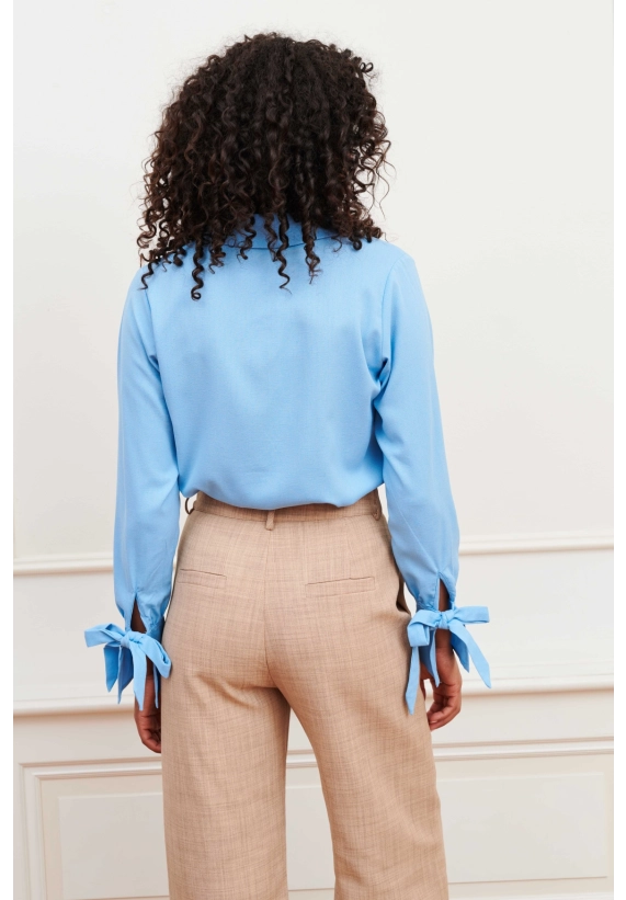 De blouse is qua fit rechtvallend en heeft strikdetails bij de mouwuiteinden.
