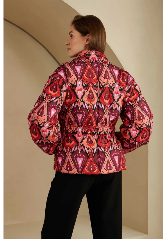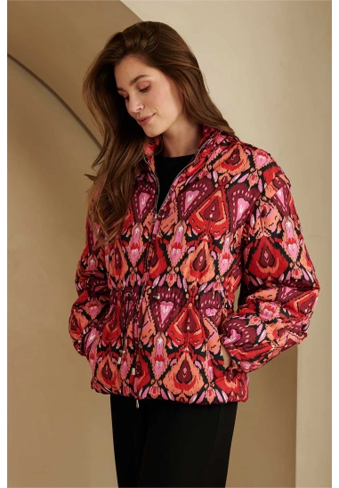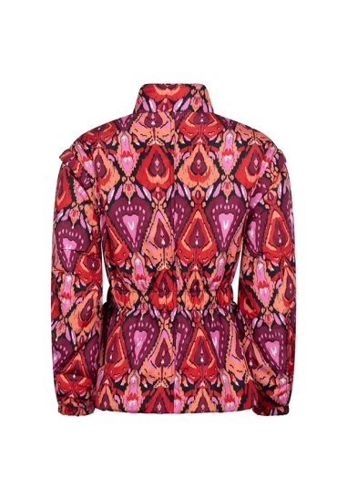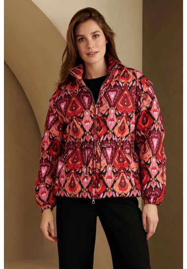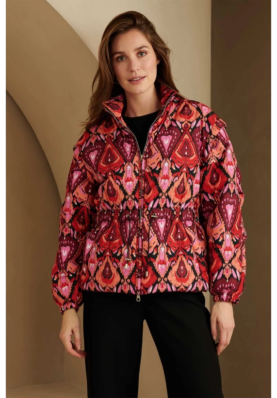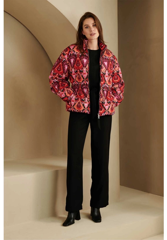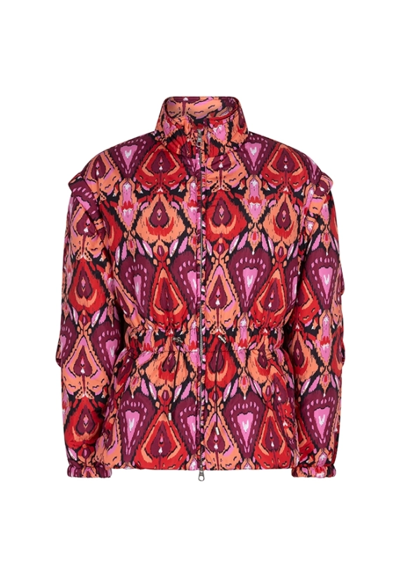 Met ritssluiting en elastieke band onderaan de mouwen.