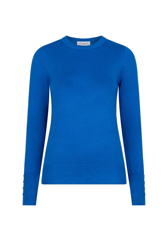 Trui Jana kobaltblauwe aangesloten trui met drukknopen van het merk Lofty Manner.