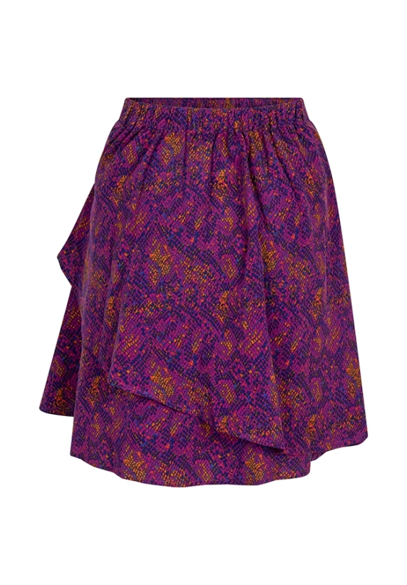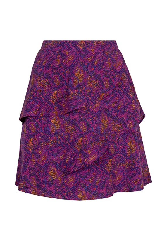 Rok Ellie voor dames is een kleurrijke rok met twee schuine volantbanen.