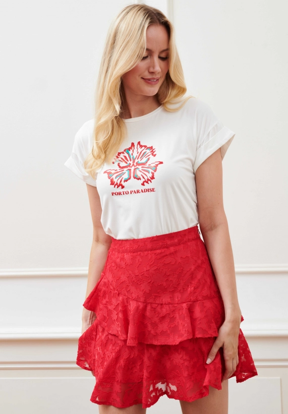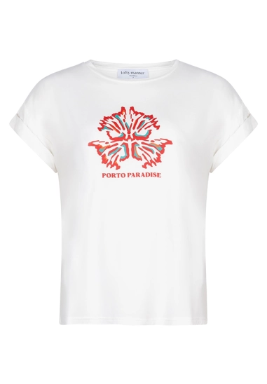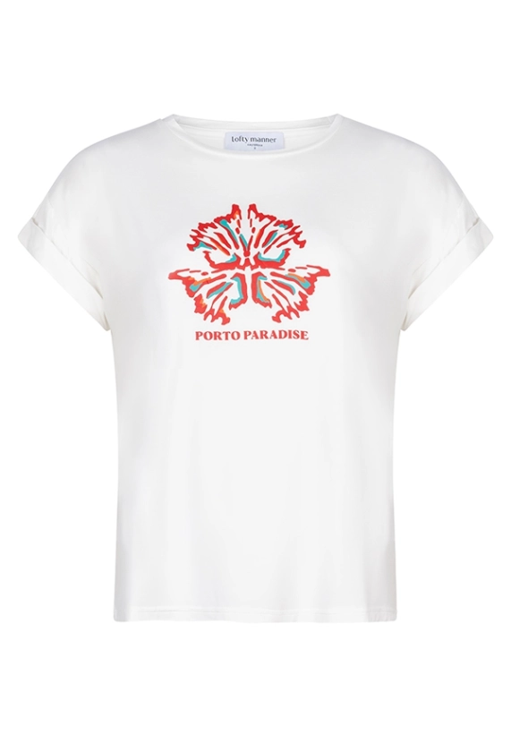 Verkrijgbaar in de kleur wit met leuke print.