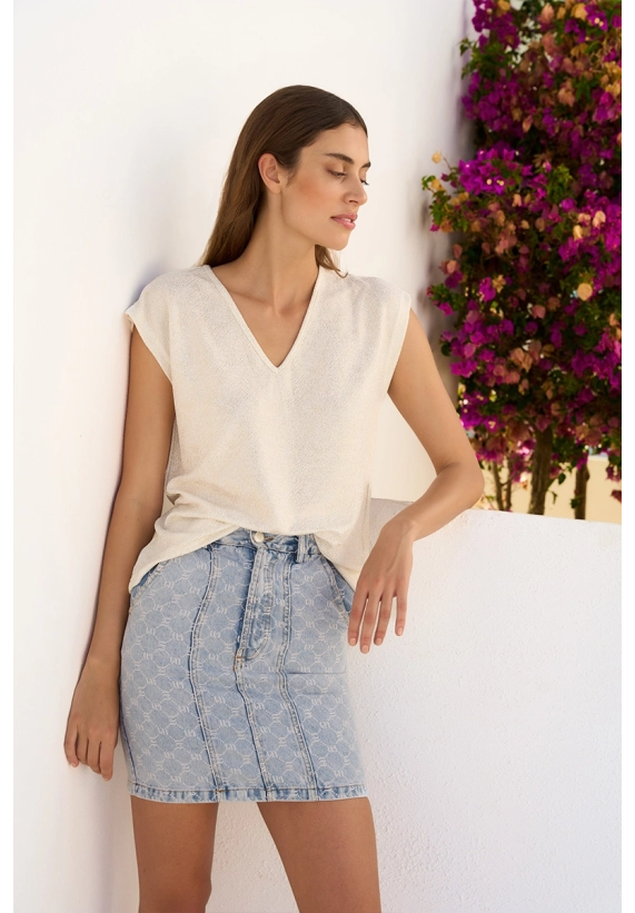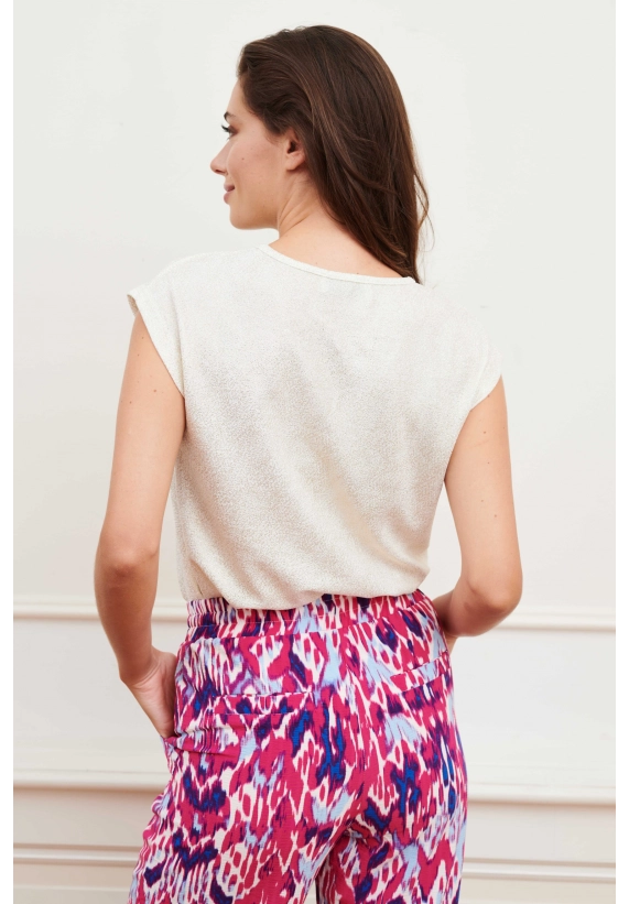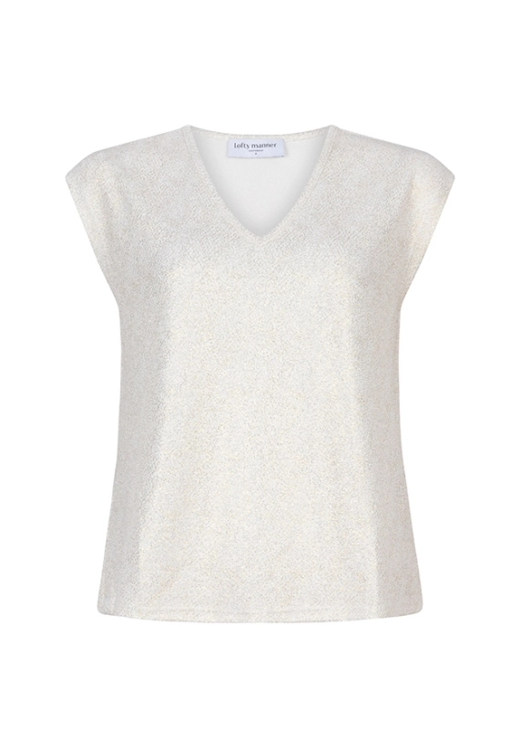 Verkrijgbaar in de kleur wit met een goud lurex draadje.