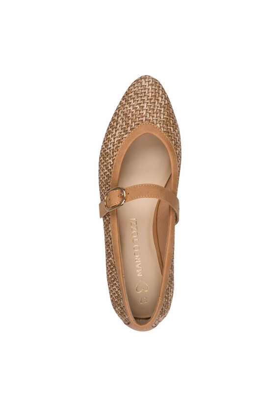 Ballerina's voor dames van het merk Marco Tozzi. Verkrijgbaar in de kleur taupe.