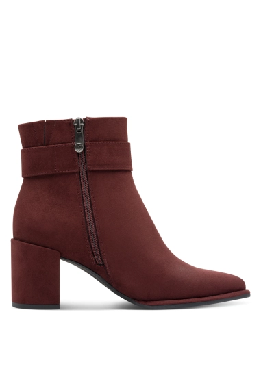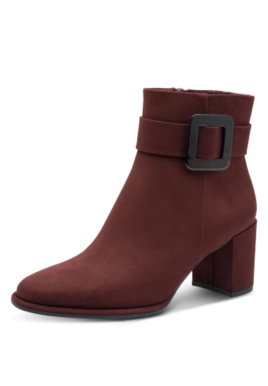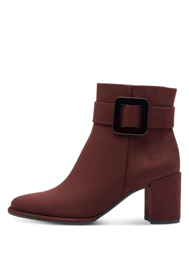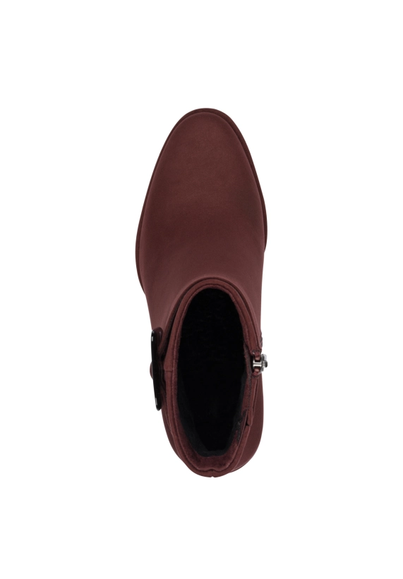 Marco Tozzi Enkellaarsjes dames laarsjes met blokhak in bordeaux rood.