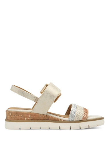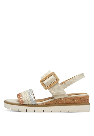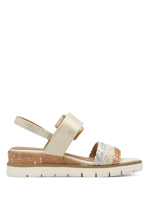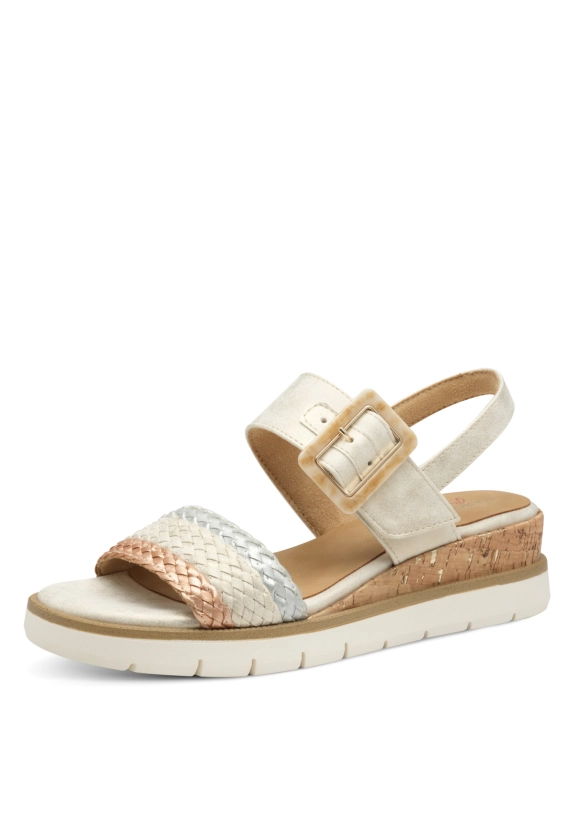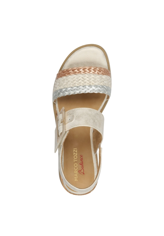 Sandalen voor dames van het merk Marco Tozzi. Verkrijgbaar in de kleur beige.