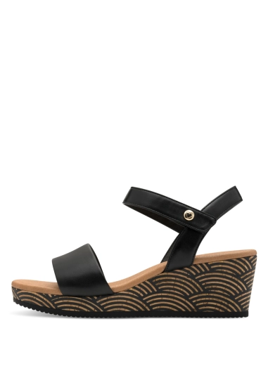 Sandalen voor dames van het merk Marco Tozzi. Verkrijgbaar in de kleur zwart.