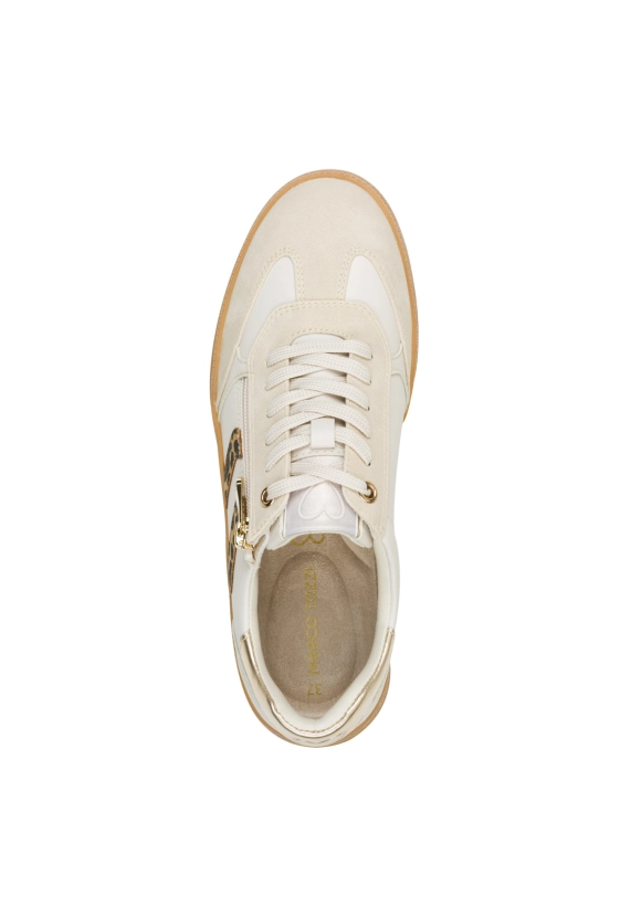 Twee zigzag streepjes in panterprint aan de zijkant van de sneaker.
