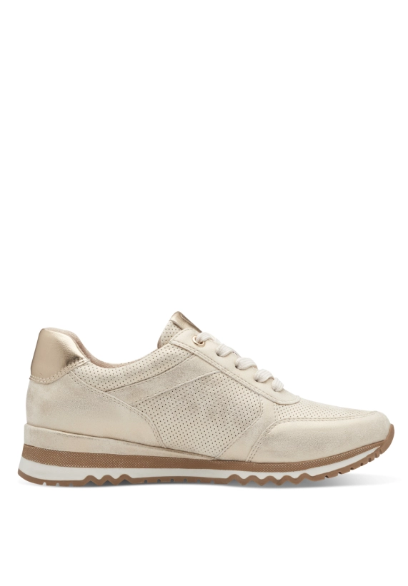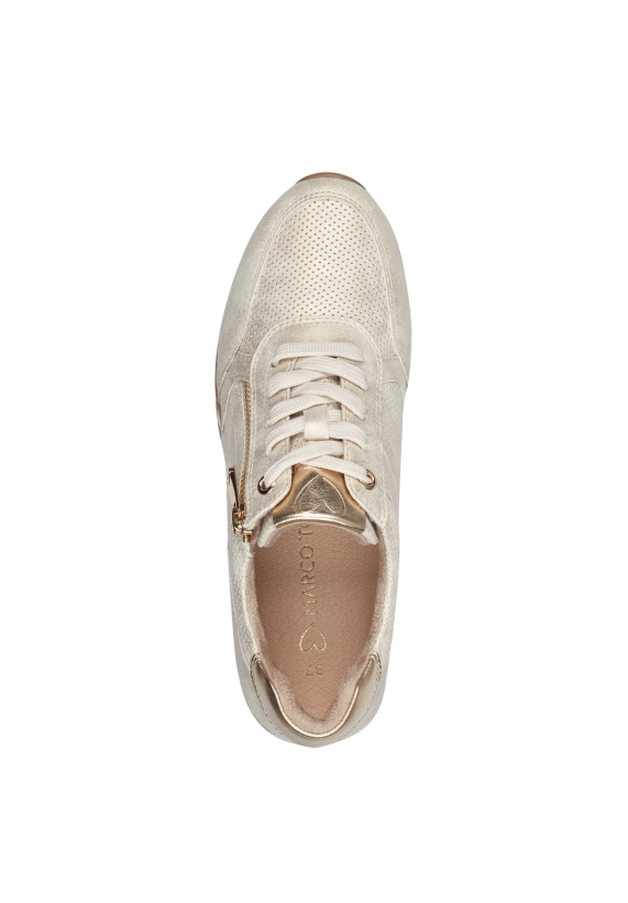 Sneakers voor dames van het merk Marco Tozzi. Verkrijgbaar in de kleur beige.