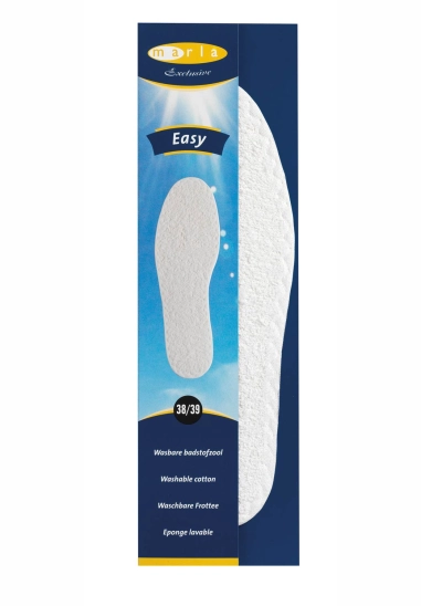 Badstofzool voor schoenen van he merk Marla. Hyginische vochtopnemende inlegzool. Zacht en luchtig. Kan blootsvoets gedragen worden. Stofzijde naar boven. Wasbaar op 30 graden. Verkrijgbaar in het wit.
