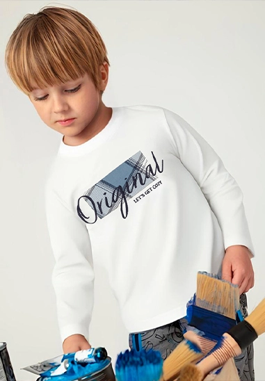 Longsleeve voor jongens van het merk Mayoral. Het shirt met lange mouwen heeft een ronde hals en toffe print met borduursel. Verkrijgbaar in het donker blauw.