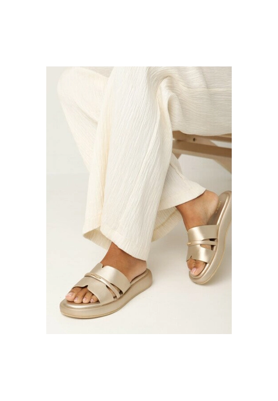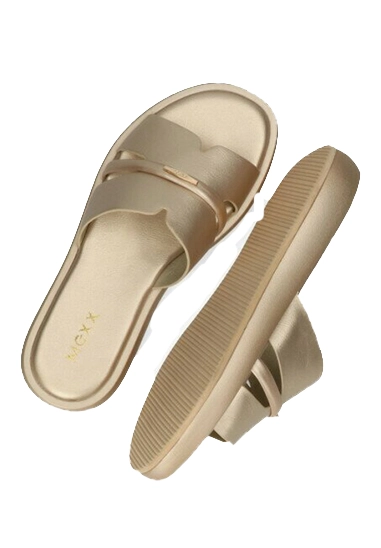 Slippers Lotus voor dames van het merk Mexx. Verkrijgbaar in de kleur goud.