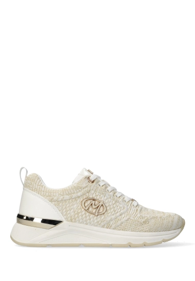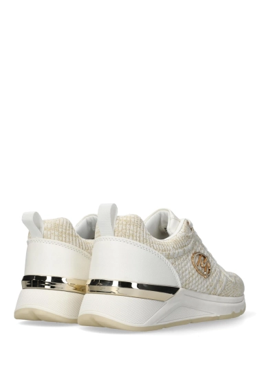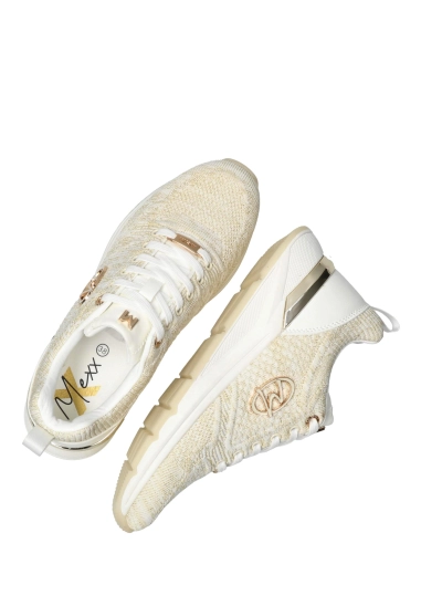 Sneakers Rox voor dames van het merk Mexx. Verkrijgbaar in de kleur ivoor wit & blauw.