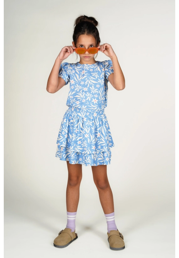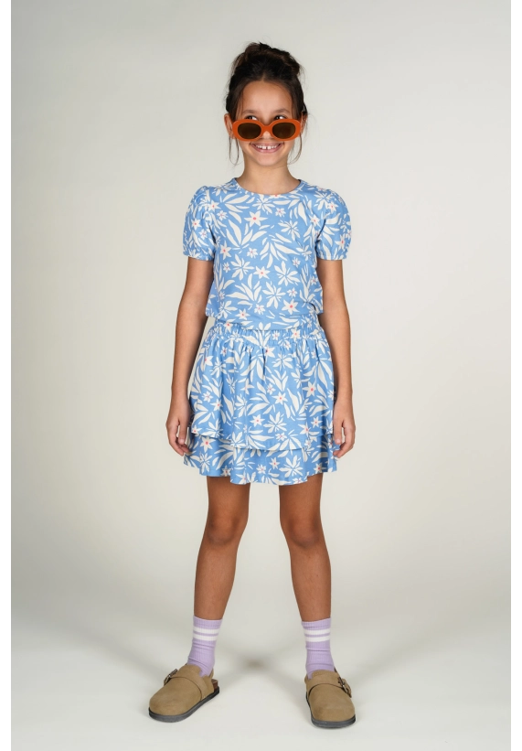 Verkrijgbaar in de kleur blauw met witte bloemen.