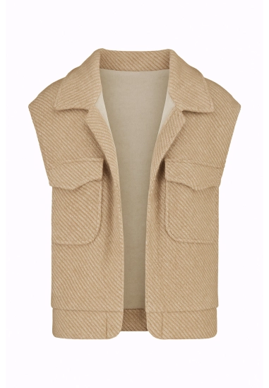 Gilet voor dames van het merk Mooij. Verkrijgbaar in de kleur bruin, ivoor wit & beige.
