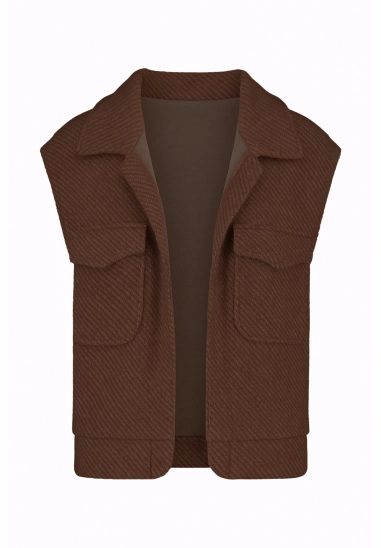 Gilet voor dames van het merk Mooij. Verkrijgbaar in de kleur bruin, ivoor wit & beige.