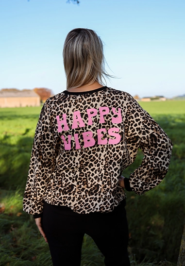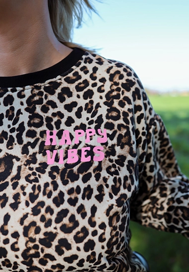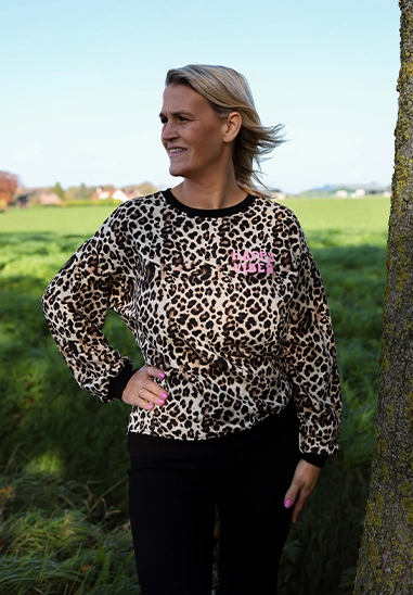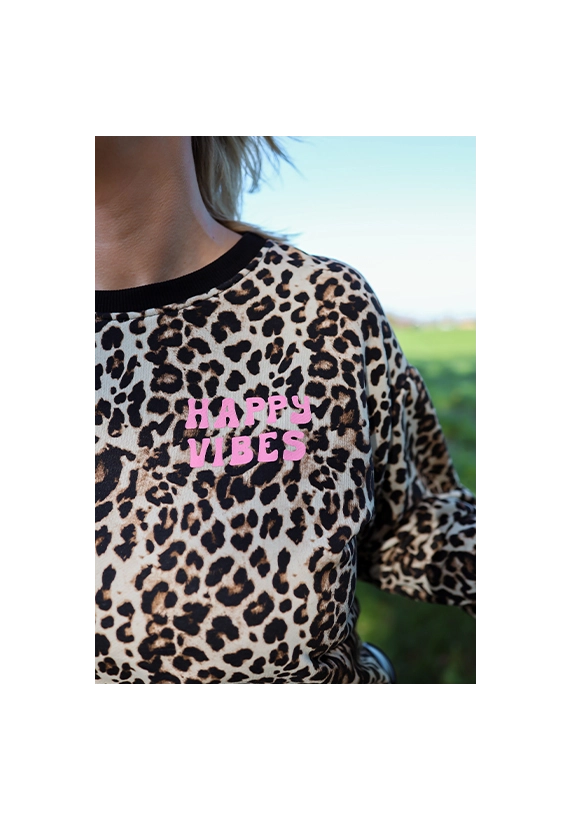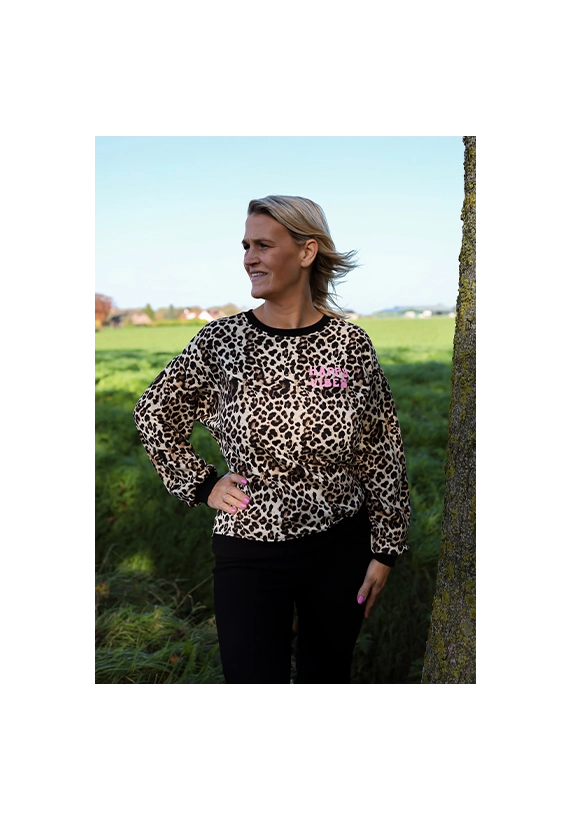 Verkrijgbaar in panterprint met gouden letter en roze letters.