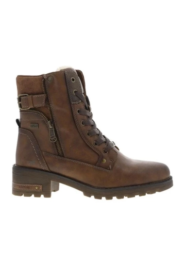 Enkelboots voor dames van het merk Mustang. Verkrijgbaar in de kleur bruin.