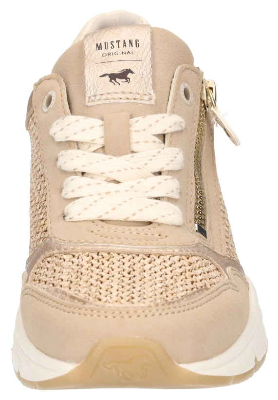 Sneakers voor dames van het merk Mustang. Verkrijgbaar in de kleur beige.