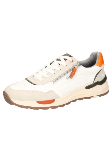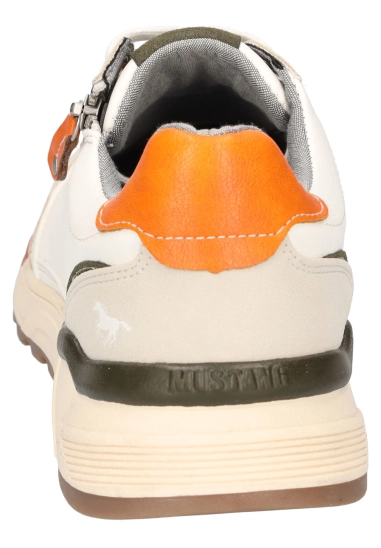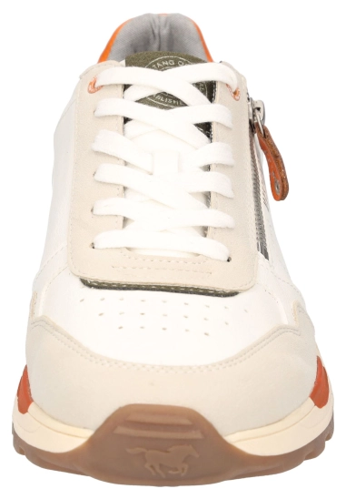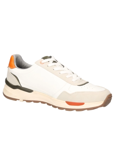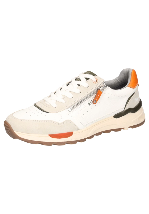Sneakers voor heren van het merk Mustang. Verkrijgbaar in de kleur ivoor wit & blauw.