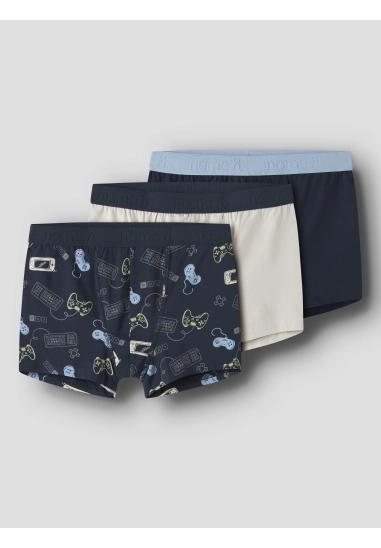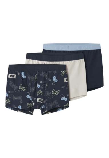 Boxer 3-pack voor jongens van het merk Name It. Verkrijgbaar in de kleur ivoor wit en donker blauw.