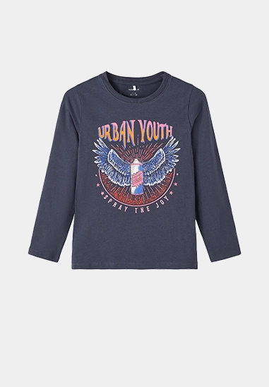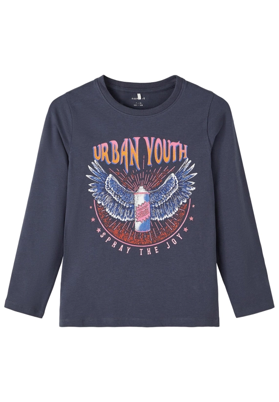 Longsleeve Nafree voor meisjes van het merk Name It. Op het shirt staat een toffe print met glitter accenten. Verkrijgbaar in het donker blauw en ivoor wit.
