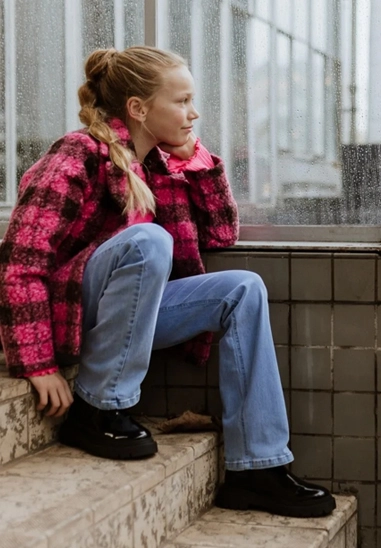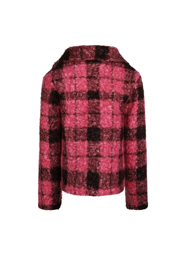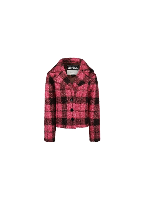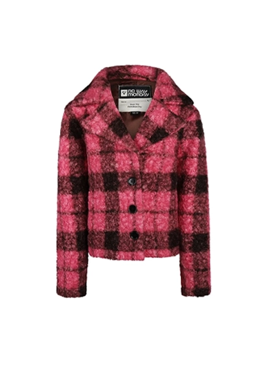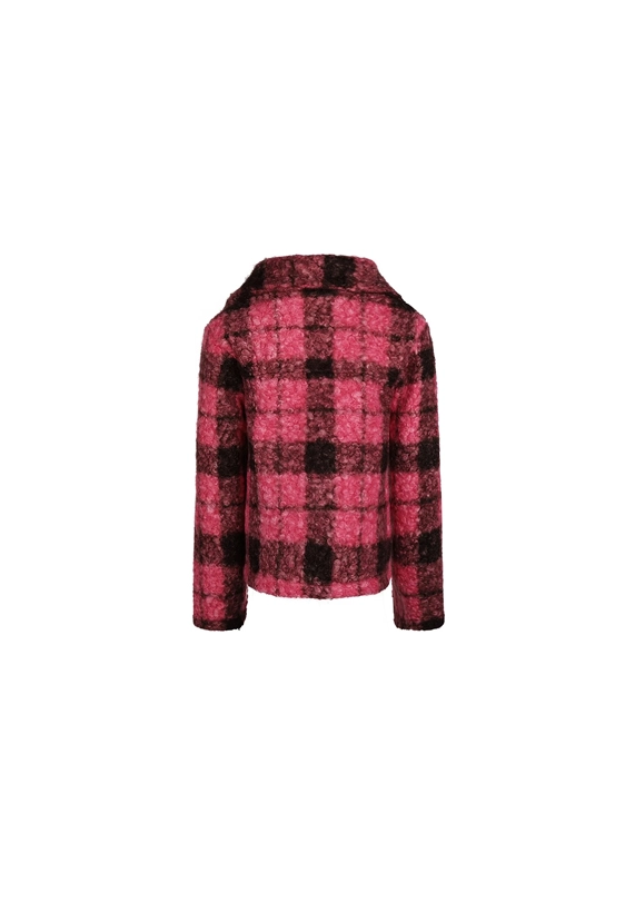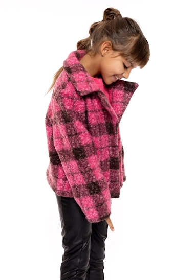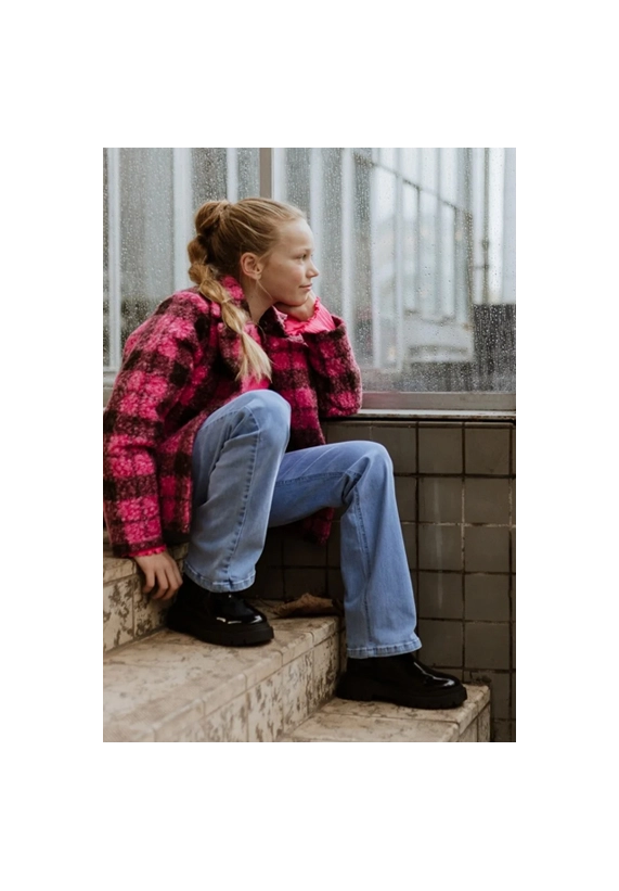 Geruit outdoor jasje voor meisjes van het merk No Way Monday. Het jasje is verkrijgbaar in een stoere fuchsia ruit.