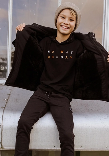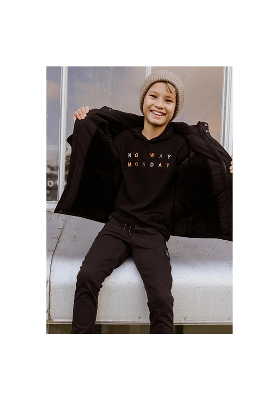 Joggingbroek voor jongens van het merk No Way Monday. Deze broek is verkrijgbaar in het zwart.