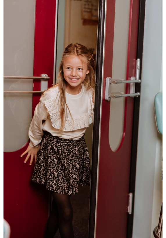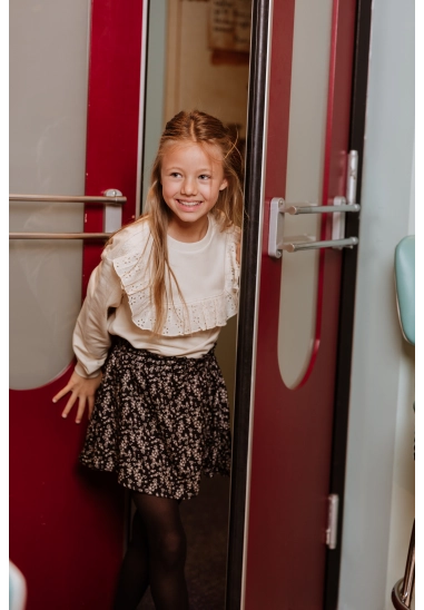 Deze rok van No Way Monday is een echte must-have voor meisjes van 6 tot 14 jaar. De rok heeft een zwarte basis met een all-over bloemenprint. Hij is gemaakt van een soepele, comfortabele stof die fijn meebeweegt. Dankzij het speelse model combineert de rok makkelijk met een T-shirt en sneakers voor een casual look, of met een blouse en laarsjes voor een feestelijke outfit.
