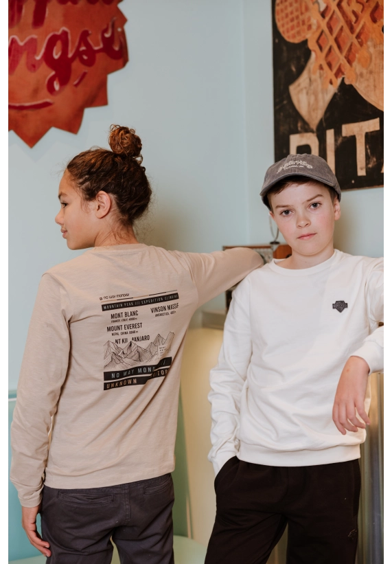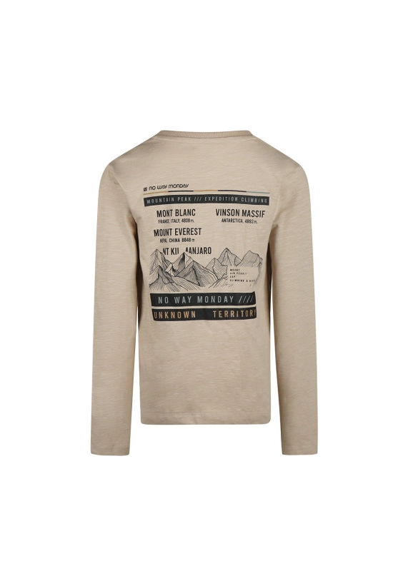 Deze beige long sleeve van No Way Monday is perfect voor stoere jongens van 6 tot en met 14 jaar. De trui heeft een tijdloos design met een subtiel borstprintje aan de voorkant en een grote berg expeditie print op de achterkant. Dit geeft de long sleeve een avontuurlijke uitstraling die ideaal past bij jongens die houden van ontdekken en bewegen.